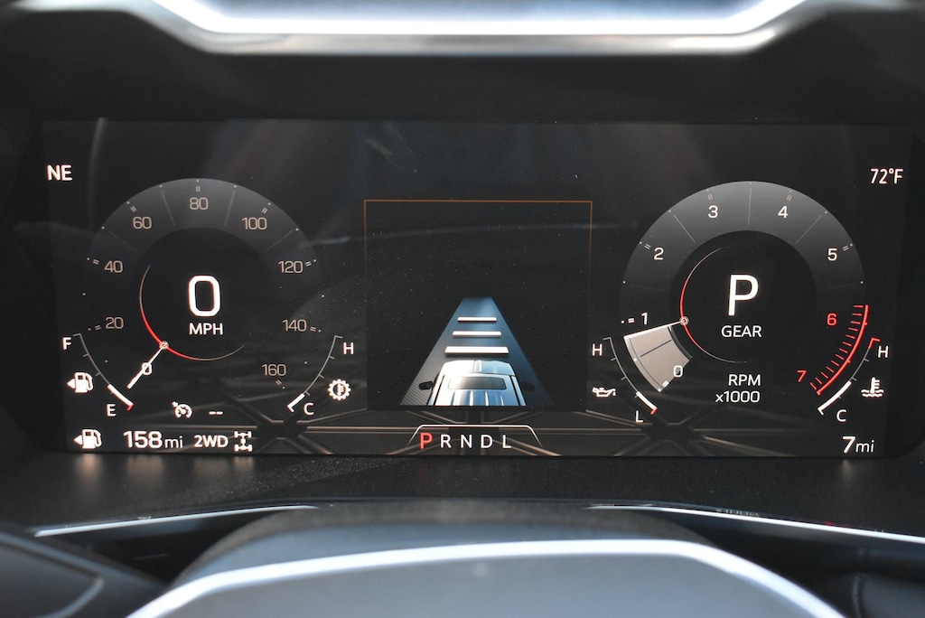 - Speedometer, tachometer, engine temperature, fuel level, mileage and trip displays