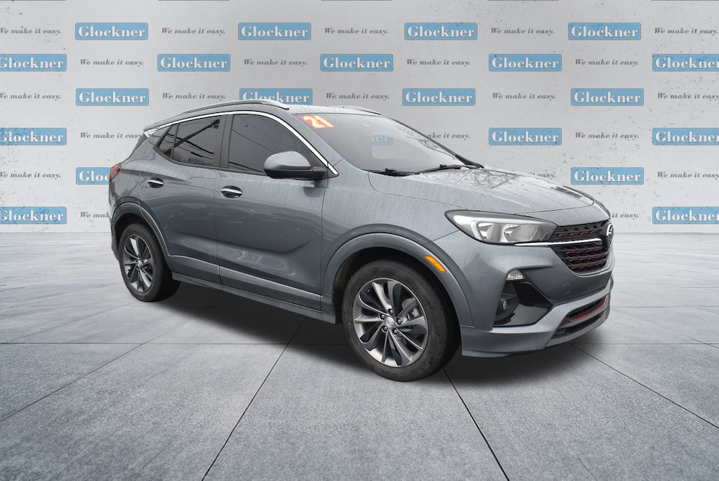 Glockner of Ironton is proud to offer this charming-looking 2021 Buick Encore GX in Satin Steel Metallic. This 2021 Buick Encore GX has passed our comprehensive inspection and comes with the following features; Preferred Equipment Group 1SB, Sport Touring Package (18 Aluminum Wheels, Body Color Rocker Moldings, Body-Color Bodyside Moldings, Custom Grille w/Red Accents, Red Front & Rear Bumper Protective Molding, Remote Vehicle Starter System, Roof-Mounted Luggage Rack Side Rails, Sport Front Bumper w/Red Accents, Sport Rear Bumper w/Red Accents, and Sport Touring Badge), 2 USB Ports w/Auxiliary Input Jack, 4-Way Manual Passenger Seat Adjuster, 4-Wheel Disc Brakes, 5.45 Final Drive Axle Ratio, 6 Speakers, 6-Way Manual Driver Seat Adjuster, ABS brakes, Air Conditioning, Alloy wheels, AM/FM radio: SiriusXM, Auto High-beam Headlights, Brake assist, Bumpers: body-color, Cloth w/Leatherette Seat Trim, Compass, Delay-off headlights, Driver door bin, Driver vanity mirror, Dual front impact airbags, Dual front side impact airbags, Electronic Stability Control, Emergency communication system: OnStar and Buick connected services capable, Enhanced Performance 6-Speaker System, Front anti-roll bar, Front Bucket Seats, Front Center Armrest, Front fog lights, Front reading lights, Front wheel independent suspension, Fully automatic headlights, Heated door mirrors, Illuminated entry, Knee airbag, Low tire pressure warning, Occupant sensing airbag, Outside temperature display, Overhead airbag, Overhead console, Panic alarm, Passenger door bin, Passenger vanity mirror, Power door mirrors, Power steering, Power windows, Radio data system, Radio: 8 Diagonal Buick Infotainment System, Rear reading lights, Rear side impact airbag, Rear window defroster, Rear window wiper, Remote keyless entry, Ride & Handling Suspension, Security system, SiriusXM Radio, Speed control, Speed-sensing steering, Split folding rear seat, Spoiler, Steering wheel mounted audio controls, Tachometer, Telescoping steering wheel, Tilt steering wheel, Traction control, Trip computer, Variably intermittent wipers, Wheels: 18 Bright Silver Painted Aluminum, and Wireless Apple CarPlay/Wireless Android Auto.