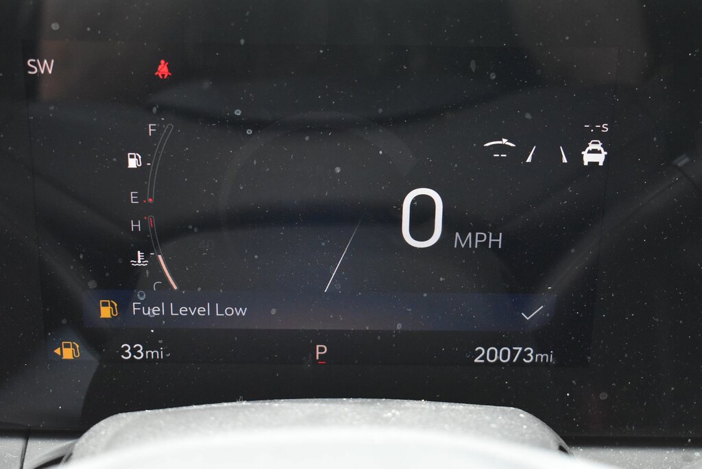 - Provides key vehicle information, such as vehicle speed, fuel range, average fuel economy, tire pressure, oil life, trip odometer and warning icons