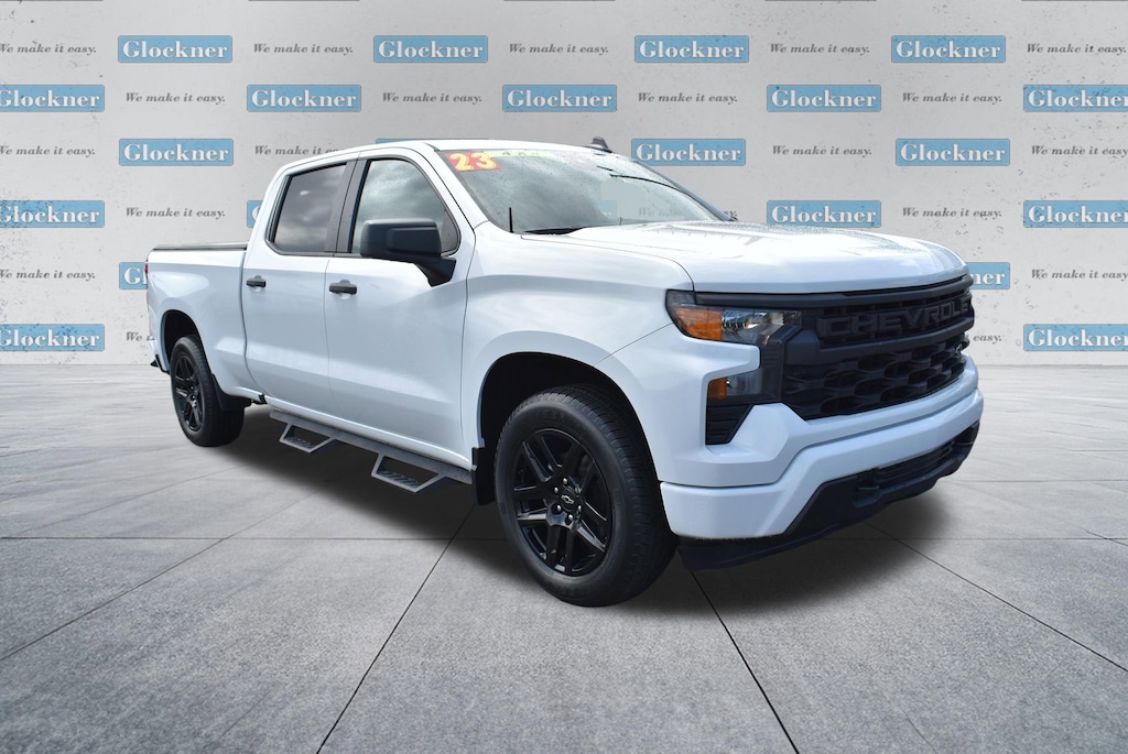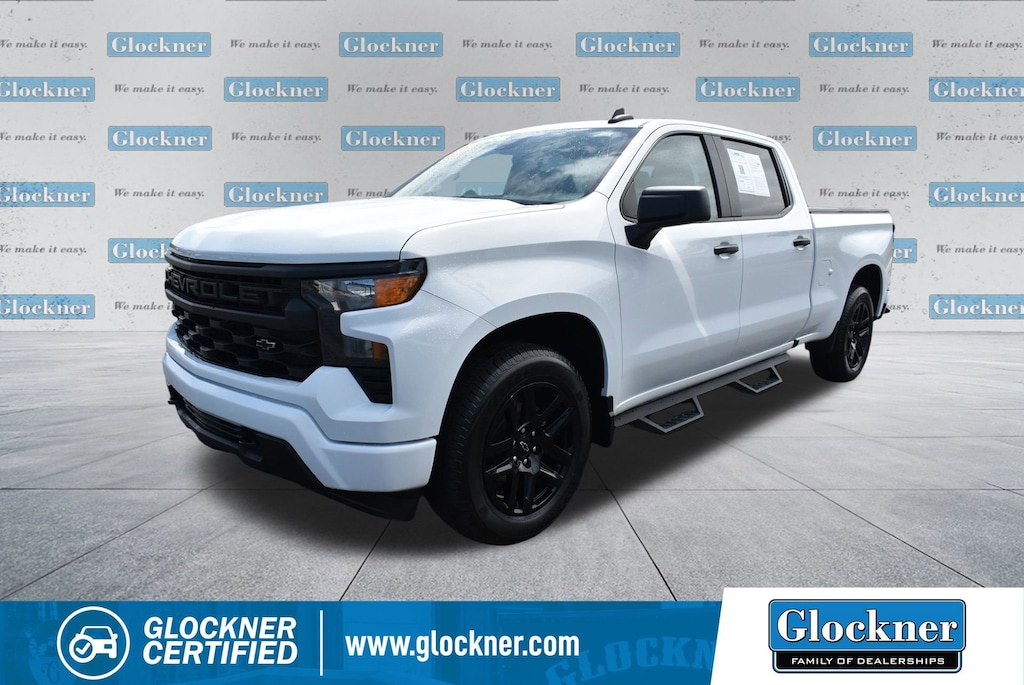 Certified. Certification Program Details: 12 Months or 12,000 miles Comprehensive Warranty. 5 Years or 100,000 miles Powertrain Warranty.Glockner of Ironton is proud to offer this dependable 2023 Chevrolet Silverado 1500 in Summit White. This 2023 Chevrolet Silverado 1500 has passed our comprehensive inspection and comes with the following features; Custom Convenience Package (Electric Rear-Window Defogger, EZ Lift Power Lock & Release Tailgate, LED Cargo Area Lighting, Remote Vehicle Starter System, and Theft Deterrent System (Unauthorized Entry)), Custom Value Package, High Capacity Suspension Package, Preferred Equipment Group 1CX (10-Way Power Driver Seat w/Lumbar, 120-Volt Bed Mounted Power Outlet, 120-Volt Instrument Panel Power Outlet, 3.5 Monochromatic Display Driver Info Center, Bluetooth® For Phone, Chevrolet Connected Access Capable, Color-Keyed Carpeting Floor Covering, Compass, Deep-Tinted Glass, Dual Rear USB Ports (Charge Only), Electrical Steering Column Lock, Electronic Cruise Control, Front Frame-Mounted Black Recovery Hooks, Front Rubberized Vinyl Floor Mats, HD Rear Vision Camera, Manual Tilt Wheel Steering Column, OnStar & Chevrolet Connected Services Capable, Power Front Windows w/Driver Express Up/Down, Power Front Windows w/Passenger Express Down, Power Rear Windows w/Express Down, Rear 60/40 Folding Bench Seat (Folds Up), Rear Rubberized-Vinyl Floor Mats, Remote Keyless Entry, SiriusXM Radio, Standard Tailgate, Wi-Fi Hot Spot Capable, and Wireless Phone Projection), Trailering Package (Hitch Guidance), Glockner Certified Certified, 8-Speed Automatic, 4WD, Jet Black/Graystone Cloth, 3.42 Rear Axle Ratio, 4-Wheel Disc Brakes, 40/20/40 Front Split-Bench Seat, 6 Speakers, 6-Speaker Audio System, ABS brakes, Air Conditioning, Alloy wheels, AM/FM radio: SiriusXM, Apple CarPlay/Android Auto, Auto High-beam Headlights, Auto-Locking Rear Differential, Automatic Emergency Braking, Brake assist, Bumpers: body-color, Cloth Seat Trim, Delay-off headlights, Driver door bin, Driver vanity mirror, Dual front impact airbags, Dual front side impact airbags, Electronic Stability Control, Following Distance Indicator, Forward Collision Alert, Front anti-roll bar, Front Black Bowtie Emblem (LPO), Front Center Armrest w/Storage, Front Pedestrian Braking, Front reading lights, Front wheel independent suspension, Fully automatic headlights, Heated door mirrors, Illuminated entry, Integrated Trailer Brake Controller, IntelliBeam Automatic High Beam On/Off, Lane Keep Assist w/Lane Departure Warning, Low tire pressure warning, Not Equipped w/Rear USB Ports, Not Equipped w/Steering Column Lock, Occupant sensing airbag, Outside temperature display, Overhead airbag, Overhead console, Panic alarm, Passenger door bin, Passenger vanity mirror, Power door mirrors, Power driver seat, Power steering, Power windows, Premium audio system: Chevrolet Infotainment 3, Radio data system, Radio: Chevrolet Infotainment 3 System, Rear reading lights, Rear step bumper, Rear window defroster, Remote keyless entry, Security system, Speed control, Speed-sensing steering, Split folding rear seat, Tachometer, Tilt steering wheel, Traction control, Trip computer, Variably intermittent wipers, Voltmeter, Wheels: 20 x 9 Bright Silver Painted Aluminum, and Wheels: 20 x 9 High Gloss Black Painted Alum.8-Speed Automatic, 4WD, Jet Black/Graystone Cloth.