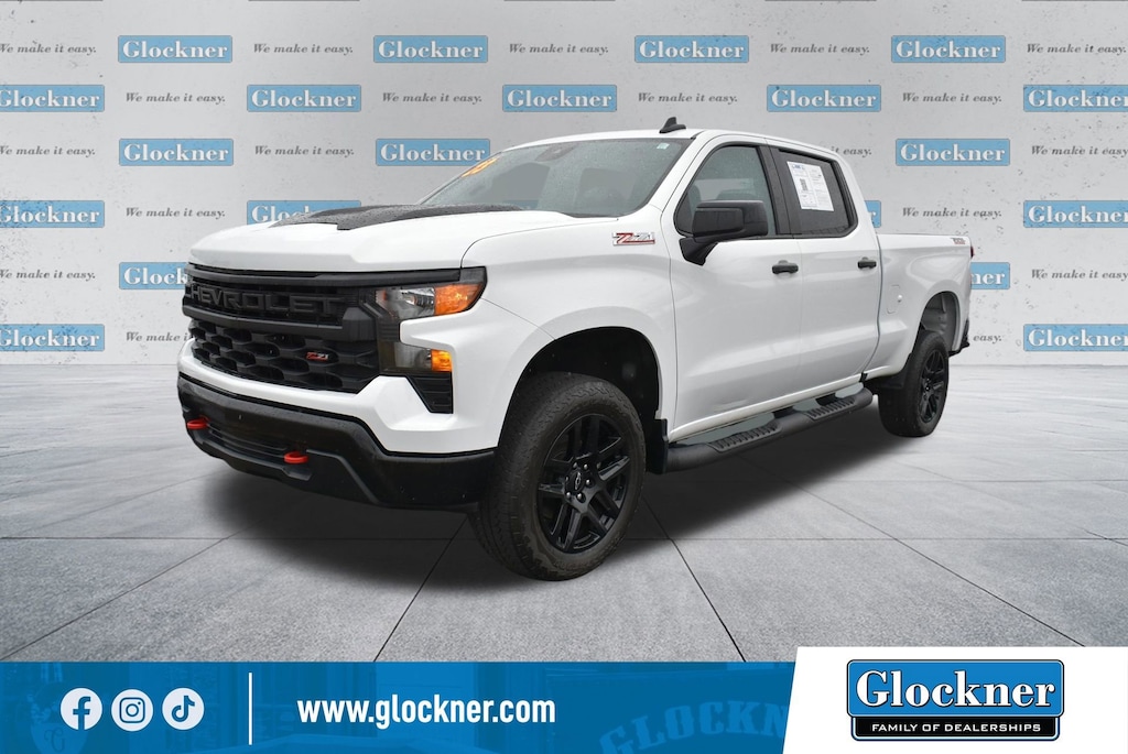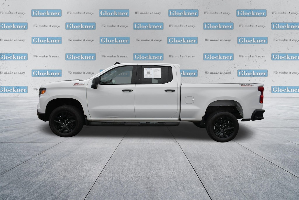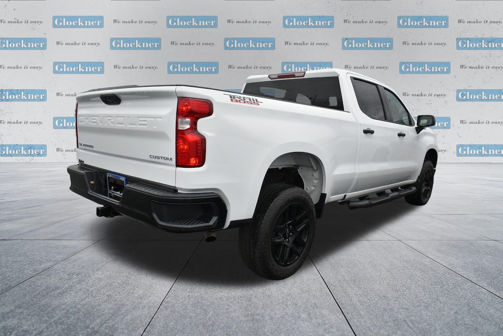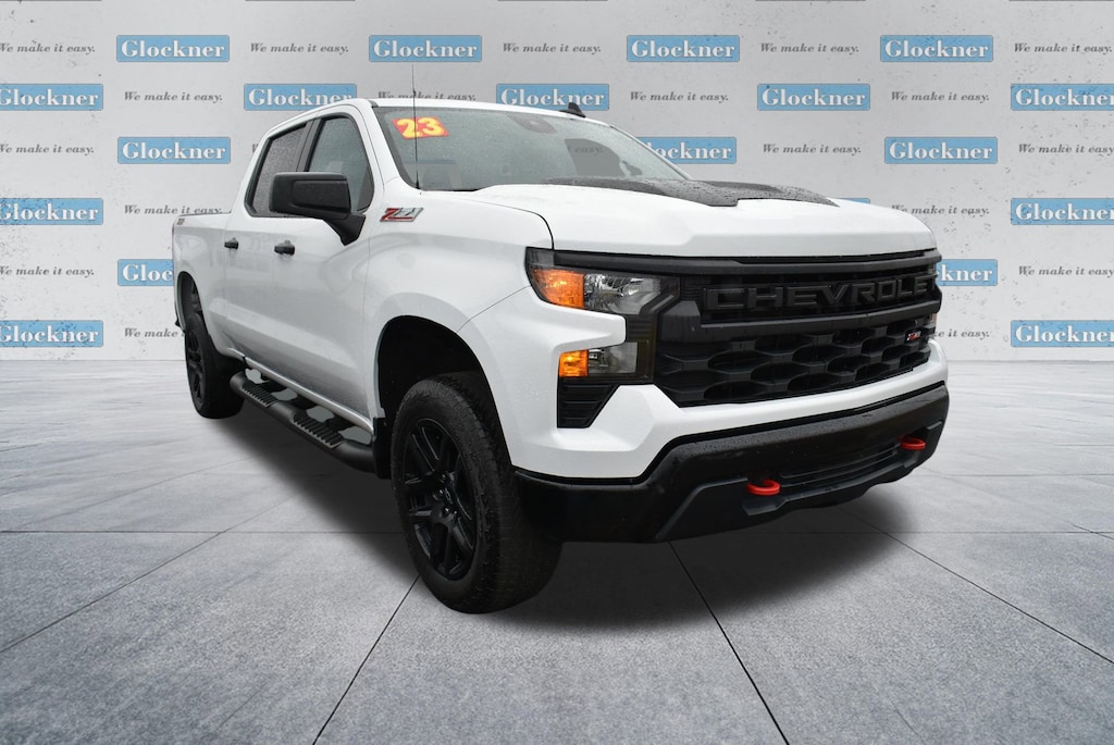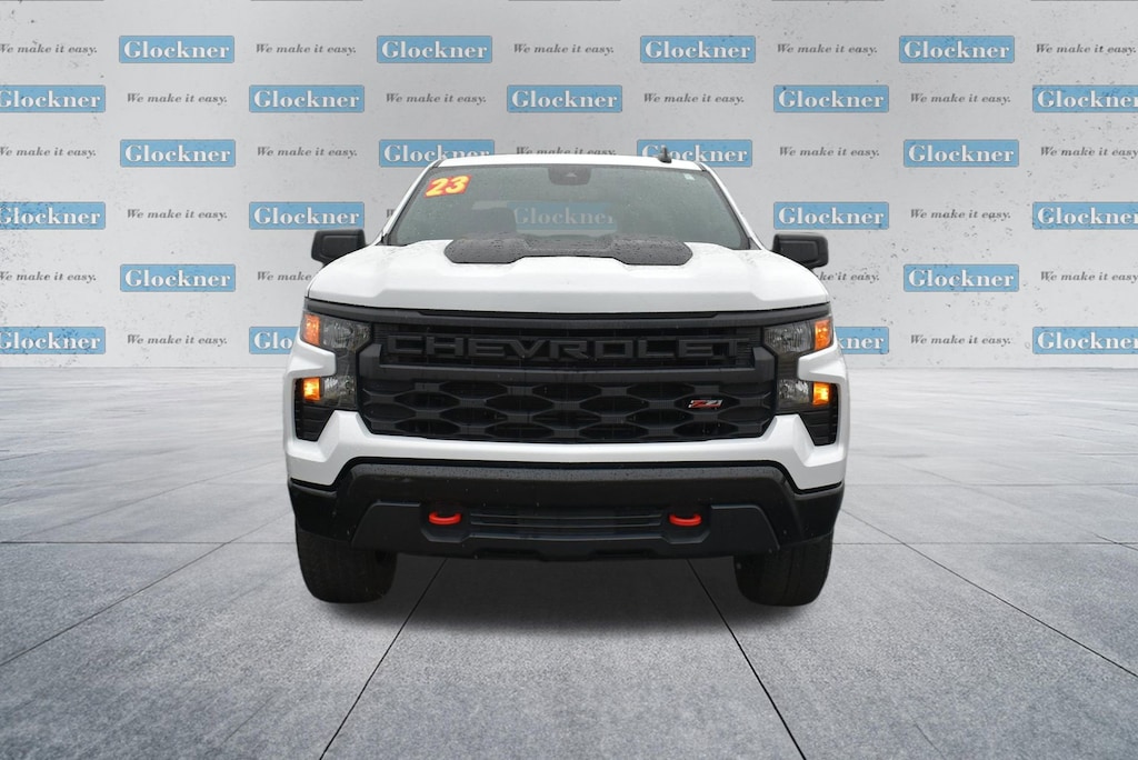 Glockner Chevrolet is proud to offer this stout 2023 Chevrolet Silverado 1500 in Summit White. This 2023 Chevrolet Silverado 1500 has passed our comprehensive inspection and comes with the following features; Custom Convenience Package (Electric Rear-Window Defogger, EZ Lift Power Lock & Release Tailgate, LED Cargo Area Lighting, Remote Vehicle Starter System, and Theft Deterrent System (Unauthorized Entry)), Suspension Package (Heavy-Duty Air Filter and Hill Descent Control), Trailering Package (Hitch Guidance), Silverado 1500 Custom Trail Boss, 4D Crew Cab, 4WD, Summit White, 10-Way Power Driver Seat w/Lumbar, 120-Volt Bed Mounted Power Outlet, 120-Volt Instrument Panel Power Outlet, 220 Amp Alternator, 3.42 Rear Axle Ratio, 3.5 Monochromatic Display Driver Info Center, 4-Wheel Disc Brakes, 40/20/40 Front Split-Bench Seat, 6 Speakers, 6-Speaker Audio System, ABS brakes, Air Conditioning, Alloy wheels, AM/FM radio: SiriusXM, Apple CarPlay/Android Auto, Auto High-beam Headlights, Auto-Locking Rear Differential, Automatic Emergency Braking, Bluetooth® For Phone, Brake assist, Chevrolet Connected Access Capable, Cloth Seat Trim, Color-Keyed Carpeting Floor Covering, Compass, Deep-Tinted Glass, Delay-off headlights, Driver door bin, Driver vanity mirror, Dual front impact airbags, Dual front side impact airbags, Dual Rear USB Ports (Charge Only), Electrical Steering Column Lock, Electronic Cruise Control, Electronic Stability Control, Following Distance Indicator, Forward Collision Alert, Front anti-roll bar, Front Center Armrest w/Storage, Front Pedestrian Braking, Front reading lights, Front Rubberized Vinyl Floor Mats, Front wheel independent suspension, Fully automatic headlights, HD Rear Vision Camera, Heated door mirrors, Illuminated entry, IntelliBeam Automatic High Beam On/Off, Lane Keep Assist w/Lane Departure Warning, Low tire pressure warning, Manual Tilt Wheel Steering Column, Occupant sensing airbag, OnStar & Chevrolet Connected Services Capable, Outside temperature display, Overhead airbag, Overhead console, Panic alarm, Passenger door bin, Passenger vanity mirror, Performance Red Recovery Hooks, Power door mirrors, Power driver seat, Power Front Windows w/Driver Express Up/Down, Power Front Windows w/Passenger Express Down, Power Rear Windows w/Express Down, Power steering, Power windows, Premium audio system: Chevrolet Infotainment 3, Radio data system, Radio: Chevrolet Infotainment 3 System, Rear 60/40 Folding Bench Seat (Folds Up), Rear reading lights, Rear Rubberized-Vinyl Floor Mats, Rear step bumper, Rear window defroster, Remote Keyless Entry, Remote keyless entry, Security system, SiriusXM Radio, Speed control, Speed-sensing steering, Split folding rear seat, Standard Tailgate, Tachometer, Tilt steering wheel, Traction control, Trip computer, Variably intermittent wipers, Voltmeter, Wheels: 18 x 8.5 Black Painted Aluminum, Wi-Fi Hot Spot Capable, and Wireless Phone Projection.Silverado 1500 Custom Trail Boss, 4D Crew Cab, 4WD, Summit White.
