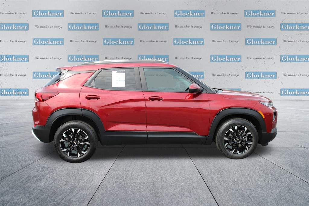 Glockner Chevrolet is proud to offer this charming 2023 Chevrolet TrailBlazer in Crimson Metallic. This 2023 Chevrolet TrailBlazer has passed our comprehensive inspection and comes with the following features; Preferred Equipment Group 1LT, TrailBlazer LT, Glockner Certified Certified, 4D Sport Utility, Crimson Metallic, 2-Way Adjustable Front Head Restraints, 2-Way Power Driver Lumbar Seat Adjuster, 4-Way Manual Front Passenger Seat Adjuster, 4-Wheel Disc Brakes, 5.45 Axle Ratio, 6 Speakers, 6-Speaker Audio System Feature, 7 Diagonal Color Touchscreen, 8-Way Power Driver Seat Adjuster, ABS brakes, Air Conditioning, Alloy wheels, AM/FM radio: SiriusXM, Auto High-beam Headlights, Brake assist, Bumpers: body-color, Cloth Seat Trim, Compass, Delay-off headlights, Driver door bin, Driver vanity mirror, Dual front impact airbags, Dual front side impact airbags, Electronic Stability Control, Emergency communication system: OnStar and Chevrolet connected services capable, Exterior Parking Camera Rear, Flat-Folding Front Passenger Seatback, Front anti-roll bar, Front Bucket Seats, Front Center Armrest, Front fog lights, Front License Plate Bracket, Front reading lights, Front wheel independent suspension, Fully automatic headlights, Heated door mirrors, Heated Driver & Front Passenger Seats, Heated front seats, Illuminated entry, Knee airbag, Low tire pressure warning, Occupant sensing airbag, Overhead airbag, Overhead console, Panic alarm, Passenger door bin, Passenger vanity mirror, Power door mirrors, Power driver seat, Power steering, Power windows, Radio data system, Radio: Chevrolet Infotainment 3 System, Rear side impact airbag, Rear window defroster, Rear window wiper, Remote keyless entry, Ride & Handling Suspension, Security system, SiriusXM Radio, Speed control, Split folding rear seat, Spoiler, Steering wheel mounted audio controls, Tachometer, Telescoping steering wheel, Tilt steering wheel, Traction control, Trip computer, Variably intermittent wipers, Wheels: 17 High Gloss Black Machined Aluminum, and Wireless Apple CarPlay/Android Auto.Clean Auto Check/No Accidents Reported, Bluetooth / Hands-Free Calling, Rear View Back Up Camera, Apple CarPlay/Android Auto, TrailBlazer LT, 4D Sport Utility, Crimson Metallic, Preferred Equipment Group 1LT.Certified.Certification Program Details: Type your description here29/31 City/Highway MPG