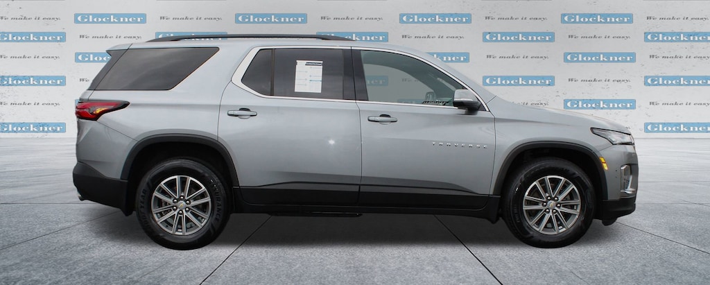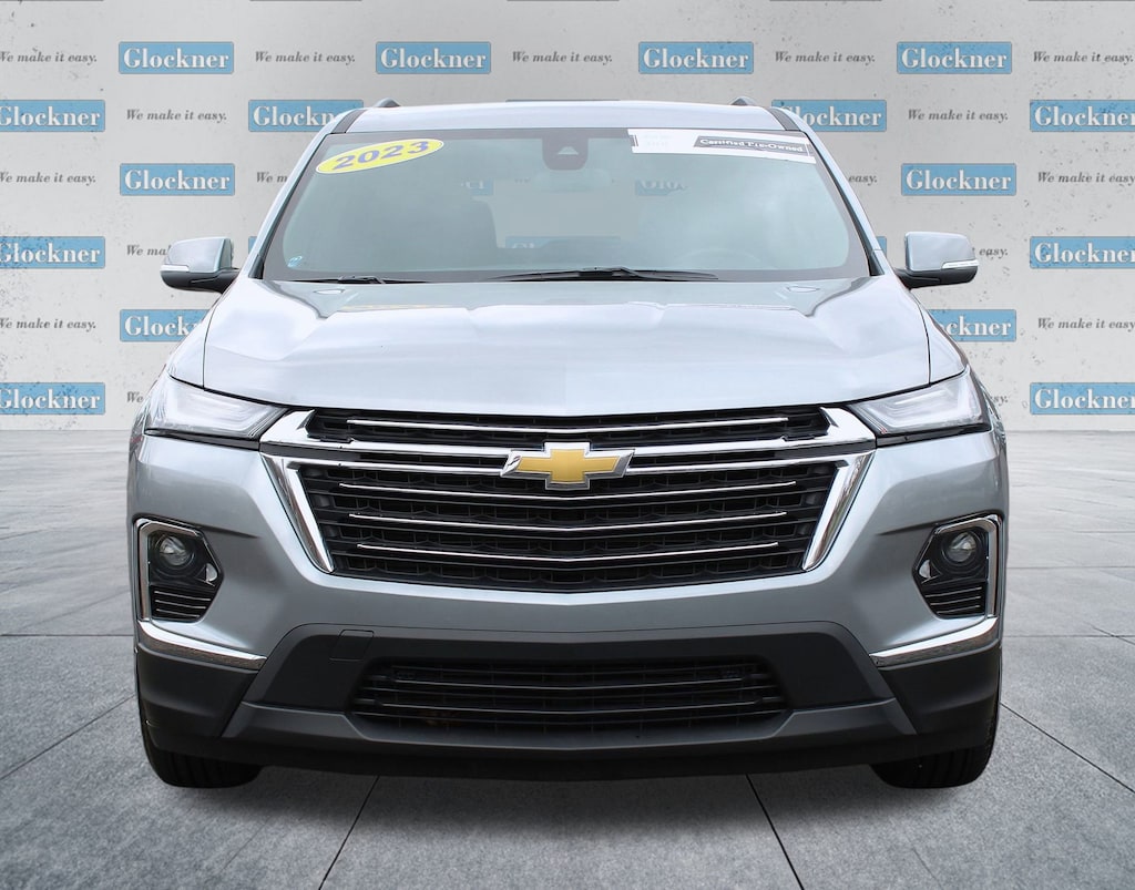 Glockner Chevrolet is proud to offer this great-looking 2023 Chevrolet Traverse in Sterling Gray Metallic. This 2023 Chevrolet Traverse has passed our comprehensive inspection and comes with the following features; Convenience & Driver Confidence Package (4.2 Multi-Color Enhanced Driver Instrument Display, Heated Driver & Front Passenger Seats, Radio: Chevrolet Infotainment 3 Plus System, Rear Power Liftgate, Remote Start, SiriusXM w/360L, and Universal Home Remote), Floor Liner Package (LPO) (1st & 2nd Row All-Weather Floor Liner (LPO), 3rd Row All-Weather Floor Liner (LPO), and Integrated Cargo Liner (LPO)), Preferred Equipment Group 1LT, Traverse LT 1LT, Glockner Certified Certified, 4D Sport Utility, 3.6L V6 SIDI VVT, 2-Way Manual Front Passenger Seat Adjuster, 3.49 Axle Ratio, 3rd row seats: split-bench, 4-Wheel Disc Brakes, 6 Speakers, 6-Speaker Audio System Feature, 8-Way Power Driver Seat Adjuster, ABS brakes, Air Conditioning, Alloy wheels, AM/FM radio: SiriusXM, Apple CarPlay/Android Auto, Auto High-beam Headlights, Automatic temperature control, Black Roof Rails, Brake assist, Bumpers: body-color, Compass, Custom Molded Front & Rear Splash Guards (LPO), Delay-off headlights, Driver door bin, Driver vanity mirror, Dual front impact airbags, Dual front side impact airbags, Electronic Stability Control, Emergency communication system, Exterior Parking Camera Rear, Four wheel independent suspension, Front anti-roll bar, Front Bucket Seats, Front Center Armrest, Front dual zone A/C, Front reading lights, Fully automatic headlights, Heated door mirrors, Illuminated entry, Leather steering wheel, Low tire pressure warning, Not Equipped w/Rear Park Assist (060), Occupant sensing airbag, Outside temperature display, Overhead airbag, Overhead console, Panic alarm, Passenger door bin, Passenger vanity mirror, Power door mirrors, Power Driver Lumbar Control, Power driver seat, Power steering, Power windows, Premium Cloth Seat Trim, Radio data system, Radio: Chevrolet Infotainment System AM/FM Stereo, Rear air conditioning, Rear anti-roll bar, Rear reading lights, Rear window defroster, Rear window wiper, Remote keyless entry, Security system, SiriusXM Radio, Speed control, Speed-sensing steering, Spoiler, Steering wheel mounted audio controls, Tachometer, Telescoping steering wheel, Tilt steering wheel, Traction control, Trip computer, Turn signal indicator mirrors, Variably intermittent wipers, Voltmeter, and Wheels: 18 Bright Silver-Painted Aluminum.