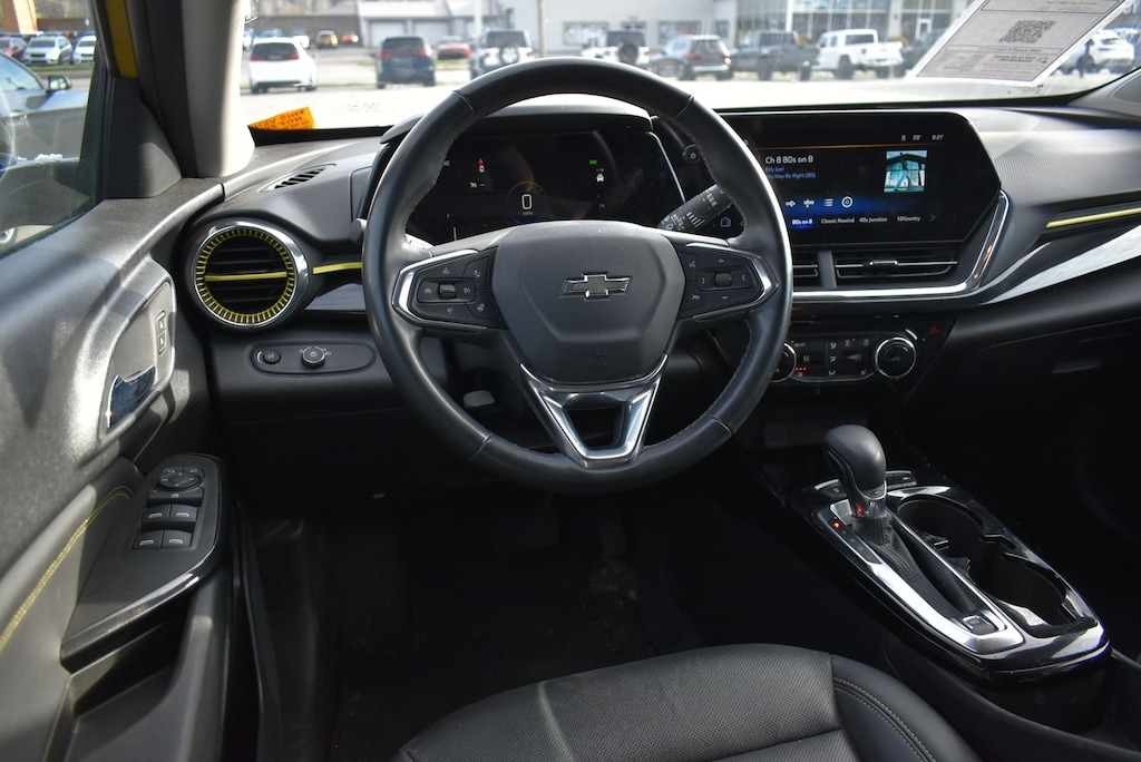 Glockner Chrysler Dodge Jeep Ram of Ashland is proud to offer this superb 2024 Chevrolet Trax in Nitro Yellow Metallic. This 2024 Chevrolet Trax has passed our comprehensive inspection and comes with the following features; Driver Confidence Package (Adaptive Cruise Control, Lane Change Alert w/Side Blind Zone Alert, and Rear Cross-Traffic Alert), License Plate Front Mounting Package, Preferred Equipment Group 1SA, Glockner Certified Certified, 2-Way Adjustable Front Head Restraints, 2-Way Power Driver Lumbar Seat Adjuster, 3.50 Final Drive Axle Ratio, 4-Way Manual Front Passenger Seat Adjuster, 4-Wheel Disc Brakes, 6 Speakers, 6-Speaker Audio System Feature, 8-Way Power Driver Seat Adjuster, ABS brakes, Air Conditioning, Alloy wheels, AM/FM radio: SiriusXM, Auto High-beam Headlights, Automatic temperature control, Brake assist, Bumpers: body-color, Compass, Delay-off headlights, Driver door bin, Driver vanity mirror, Dual front impact airbags, Dual front side impact airbags, Electronic Stability Control, Emergency communication system: OnStar and Chevrolet connected services capable, Evotex Seat Trim, Exterior Parking Camera Rear, Front anti-roll bar, Front Bucket Seats, Front Center Armrest, Front reading lights, Front wheel independent suspension, Fully automatic headlights, Heated door mirrors, Heated Driver & Front Passenger Seats, Heated front seats, Heated steering wheel, Illuminated entry, Low tire pressure warning, Occupant sensing airbag, Outside temperature display, Overhead airbag, Overhead console, Panic alarm, Passenger door bin, Passenger vanity mirror, Power door mirrors, Power driver seat, Power steering, Power windows, Premium audio system: Chevrolet Infotainment 3, Radio data system, Radio: Audio System w/AM/FM, Rear Park Assist (DISC), Rear window defroster, Rear window wiper, Remote keyless entry, Security system, SiriusXM, Speed control, Split folding rear seat, Spoiler, Steering wheel mounted audio controls, Tachometer, Telescoping steering wheel, Tilt steering wheel, Traction control, Trip computer, Variably intermittent wipers, and Wheels: 18" Black-Painted Aluminum.