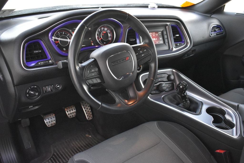 Glockner Chrysler Dodge Jeep Ram of Ashland is proud to offer this stunning-looking 2016 Dodge Challenger in Pitch Black Clearcoat. This 2016 Dodge Challenger has passed our comprehensive inspection and comes with the following features; Quick Order Package 22H R/T (Trunklid Spoiler), 4-Wheel Disc Brakes, 6 Speakers, ABS brakes, Air Conditioning, Alloy wheels, AM/FM radio, Anti-Lock Brakes, Anti-whiplash front head restraints, Auto-dimming Rear-View mirror, Automatic temperature control, Brake assist, Bright Pedals, Bumpers: body-color, Compass, Delay-off headlights, Driver door bin, Driver vanity mirror, Dual front impact airbags, Dual front side impact airbags, Electronic Stability Control, Four wheel independent suspension, Front anti-roll bar, Front Bucket Seats, Front Center Armrest, Front dual zone A/C, Front fog lights, Front reading lights, Fully automatic headlights, Heated door mirrors, Houndstooth Cloth Sport Seats, Illuminated entry, Integrated Voice Command w/Bluetooth, Leather Shift Knob, Low tire pressure warning, Media Hub (SD, USB, AUX Ports), Nav Capable! See Dealer For Details, Outside temperature display, Overhead airbag, Overhead console, Panic alarm, Passenger door bin, Passenger vanity mirror, Power door mirrors, Power driver seat, Power steering, Power windows, Radio data system, Radio: Uconnect 5.0, Rear anti-roll bar, Rear reading lights, Rear seat center armrest, Rear window defroster, Remote keyless entry, Security system, Speed control, Speed-sensing steering, Split folding rear seat, Spoiler, Steering wheel mounted audio controls, Tachometer, Telescoping steering wheel, Tilt steering wheel, Traction control, Trip computer, Variably intermittent wipers, and Wheels: 20" x 8.0" Premium Painted Aluminum.