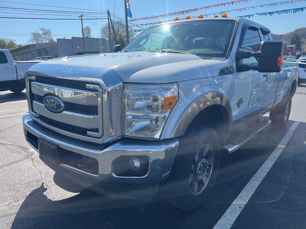 Glockner Chevrolet is proud to offer this dependable 2014 Ford F-350SD in White Platinum Metallic Tri-Coat. This 2014 Ford F-350SD has passed our comprehensive inspection and comes with the following features; Order Code 618A, Snow Plow Prep Package, F-350 SuperDuty Lariat, 4D Extended Cab, Power Stroke 6.7L V8 DI 32V OHV Turbodiesel, 4WD, Extra Heavy Duty 200-Amp Alternator, 18 Bright Machined 6-Spoke Cast Alum Wheels, 3.73 Axle Ratio, 4-Wheel Disc Brakes, 9 Speakers, ABS brakes, Adjustable pedals, Air Conditioning, Alloy wheels, AM/FM radio: SiriusXM, Auto-dimming Rear-View mirror, Automatic temperature control, Brake assist, Bumpers: chrome, CD player, Compass, Delay-off headlights, Driver door bin, Driver vanity mirror, Dual front impact airbags, Dual front side impact airbags, Electronic Stability Control, Exterior Parking Camera Rear, Front anti-roll bar, Front Bucket Seats, Front Center Armrest, Front dual zone A/C, Front fog lights, Front reading lights, Fully automatic headlights, Heated door mirrors, Illuminated entry, Leather steering wheel, Low tire pressure warning, Outside temperature display, Overhead airbag, Overhead console, Panic alarm, Passenger cancellable airbag, Passenger door bin, Passenger vanity mirror, Power door mirrors, Power driver seat, Power passenger seat, Power steering, Power windows, Premium Leather Seating Surfaces 40/Console/40, Radio data system, Radio: Premium AM/FM Stereo w/Single CD/MP3 Player, Rear Parking Sensors, Rear step bumper, Rear window defroster, Remote keyless entry, Security system, SiriusXM Satellite Radio, Speed control, Split folding rear seat, Steering wheel mounted audio controls, SYNC w/MyFord Touch & SYNC Services, Tachometer, Telescoping steering wheel, Tilt steering wheel, Traction control, Trip computer, Turn signal indicator mirrors, and Variably intermittent wipers.