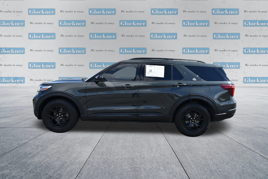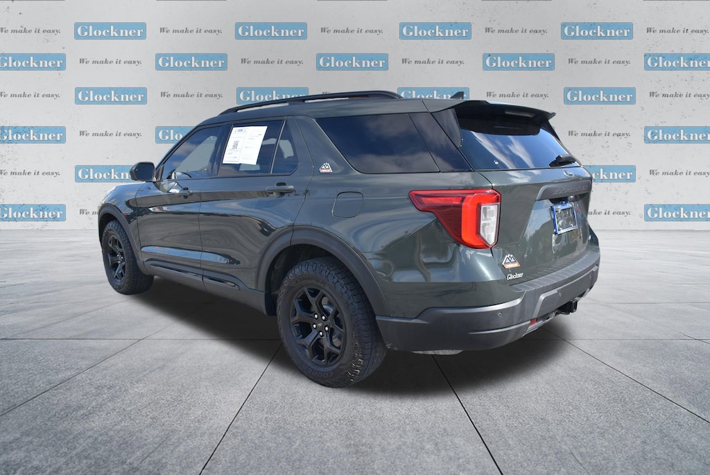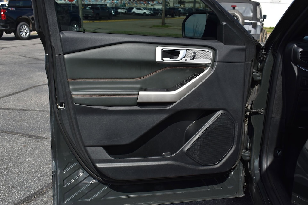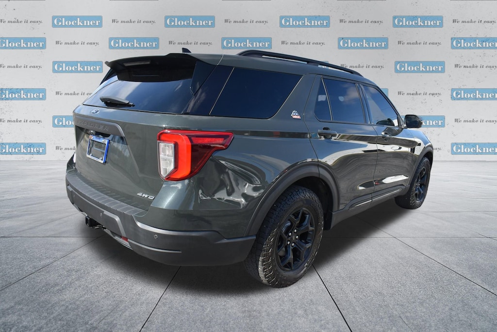 Glockner of Ironton is proud to offer this gorgeous-looking 2022 Ford Explorer in Green Metallic. This 2022 Ford Explorer has passed our comprehensive inspection and comes with the following features; Equipment Group 800A, Timberline Technology Package (110V/150W AC Power Outlet, 3rd Row PowerFold Seat, Auto-Dimming Interior Rear-View Mirror, FordPass Connect, Radio: B&O Sound System by Bang & Olufsen, Sideview Mirrors w/Gloss Black Caps, SYNC 3 Communications & Entertainment System, Universal Garage Door Opener (UGDO), and Wireless Charging Pad), 4WD, 1st Row Heated Seats, 3.58 Torsen Limited Slip Rear Axle, 3rd row seats: bench, 4-Wheel Disc Brakes, 4G LTE Wi-Fi Hotspot Removal Credit, 6 Speakers, ABS brakes, ActiveX Seat Material Captain's Charis, Air Conditioning, Alloy wheels, AM/FM radio: SiriusXM, AM/FM Stereo, Auto High-beam Headlights, Auto Start-Stop Removal, Automatic temperature control, Brake assist, Bumpers: body-color, Compass, Delay-off headlights, Driver door bin, Driver vanity mirror, Dual front impact airbags, Dual front side impact airbags, Electronic Stability Control, Emergency communication system: SYNC 3 911 Assist, Exterior Parking Camera Rear, Four wheel independent suspension, Front anti-roll bar, Front Bucket Seats, Front Center Armrest, Front dual zone A/C, Front fog lights, Front reading lights, Fully automatic headlights, Heated door mirrors, Heated front seats, Heated rear seats, Heated steering wheel, Illuminated entry, Knee airbag, Leather steering wheel, Low tire pressure warning, Navigation System, Occupant sensing airbag, Outside temperature display, Overhead airbag, Overhead console, Panic alarm, Passenger door bin, Passenger vanity mirror, Power door mirrors, Power driver seat, Power Liftgate, Power passenger seat, Power steering, Power windows, Rear air conditioning, Rear anti-roll bar, Rear reading lights, Rear window defroster, Rear window wiper, Remote keyless entry, Roof rack: rails only, Security system, SelectShift Capability w/Paddle Shifters, Speed control, Speed-sensing steering, Speed-Sensitive Wipers, Split folding rear seat, Spoiler, Sport steering wheel, Steering wheel mounted audio controls, SYNC 3/Apple CarPlay/Android Auto, Tachometer, Telescoping steering wheel, Tilt steering wheel, Traction control, Trip computer, Twin Panel Moonroof, Variably intermittent wipers, Voice-Activated Touchscreen Navigation System, and Wheels: 18 High Gloss Black-Painted Aluminum.