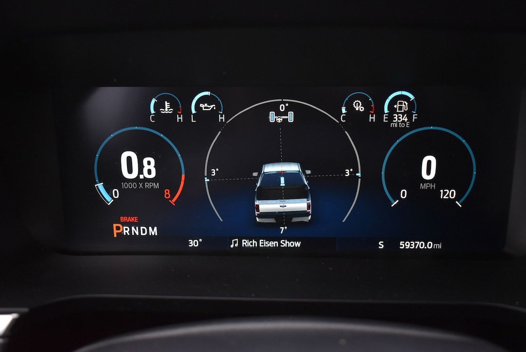 The interior of this Platinum-trimmed F-150 is a true sanctuary of comfort and technology. Sink into the plush leather seating, which features power adjustability and heating for both the driver and passenger. The panoramic dual-pane sunroof floods the cabin with natural light, creating an airy and inviting atmosphere. Stay connected and entertained with the advanced SYNC 4 infotainment system, featuring navigation, Bluetooth connectivity, and a premium B&O sound system.