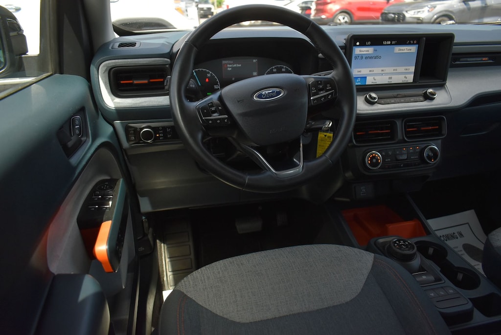 Stepping inside, the Maverick XLT offers a wealth of creature comforts and convenience features, from the 6-speaker audio system and steering wheel-mounted audio controls to the automatic temperature control and power windows. The unique cloth front bucket seats provide exceptional comfort and support, while the 8-way power driver's seat and 6-way manual passenger seat ensure a personalized fit.