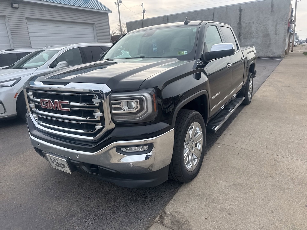 Glockner of Ironton is proud to offer this good-looking 2018 GMC Sierra 1500 in Onyx Black. This 2018 GMC Sierra 1500 has passed our comprehensive inspection and comes with the following features; Enhanced Driver Alert Package (Forward Collision Alert, IntelliBeam Automatic High Beam On/Off Headlight, Lane Keep Assist, Low Speed Forward Automatic Braking, and Ultrasonic Front & Rear Park Assist), Off-Road Suspension Package (Hill Descent Control), Preferred Equipment Group 4SA (110-Volt AC Power Outlet, 150 Amp Alternator, 1st & 2nd Row Color-Keyed Carpeted Floor Mats, 2-Speed Active Electronic AutoTrac Transfer Case, 4.2 Diagonal Color Display Driver Info Center, Auto-Dimming Inside Rear-View Mirror, Auxiliary External Transmission Oil Cooler, Chrome Bodyside Moldings, Chrome Door Handles, Chrome Mirror Caps, Color-Keyed Carpeting, Deep-Tinted Glass, Driver & Front Passenger Illuminated Vanity Mirrors, Dual-Zone Automatic Climate Control, Electric Rear-Window Defogger, EZ Lift & Lower Tailgate, Front Frame-Mounted Black Recovery Hooks, GMC 4G LTE, GMC Connected Access, Heavy-Duty Rear Locking Differential, Leather Wrapped Steering Wheel w/Cruise Controls, LED Cargo Box Lighting, LED Tailamps w/Signature, Manual Tilt/Telescoping Steering Column, OnStar & GMC Connected Services Capable, Power Adjustable Pedals, Power Folding & Adjustable Heated Outside Mirrors, Power Windows w/Driver Express Up & Down, Rear 60/40 Folding Bench Seat (Folds Up), Rear Wheelhouse Liners, Remote Keyless Entry, Remote Locking Tailgate, Remote Vehicle Starter System, Single Slot CD/MP3 Player, Steering Wheel Audio Controls, Theft Deterrent System (Unauthorized Entry), Thin Profile LED Fog Lamps, and Universal Home Remote), SLT Crew Cab Premium Plus Package (10-Way Power Driver's Seat Adjuster, 20 x 9 Chrome Clad Aluminum Wheels, 6-Speaker Audio System, 6 Rectangular Chromed Tubular Assist Steps, Bose Speaker System, Floor Mounted Console, Front Full Feature Power Reclining Bucket Seats, HD Radio, Heated & Ventilated Front Bucket Seats, Heated Driver & Front Passenger Seats, High-Performance LED Headlamps, Integrated Trailer Brake Controller, Leather Wrapped Heated Steering Wheel, Power Sliding Rear Window w/Defogger, Radio: AM/FM/GMC Infotainment & Navigation, SiriusXM Satellite Radio, Spray-On Pickup Box Bed Liner w/GMC Logo, and Wireless Charging), Trailering Equipment, 8-Speed Automatic with Overdrive, 4WD, Dark Ash Seats With Jet Black Interior Accents Leather, 3.08 Rear Axle Ratio, 3.42 Rear Axle Ratio, 4-Wheel Disc Brakes, 40/20/40 Front Split Bench Seat, 6 Speakers, ABS brakes, Adjustable pedals, Air Conditioning, Alloy wheels, AM/FM radio: SiriusXM, Auto-dimming door mirrors, Auto-dimming Rear-View mirror, Automatic temperature control, Bodyside moldings, Brake assist, Bumpers: chrome, CD player, Chrome Tailgate Handle (LPO), Compass, Delay-off headlights, Driver door bin, Driver vanity mirror, Dual front impact airbags, Dual front side impact airbags, Electronic Stability Control, Exterior Parking Camera Rear, Front anti-roll bar, Front Center Armrest w/Storage, Front dual zone A/C, Front fog lights, Front License Plate Kit, Front reading lights, Front wheel independent suspension, Fully automatic headlights, Garage door transmitter, Heated door mirrors, Heated front seats, Heavy Duty Suspension, High-Intensity Discharge Headlights, Illuminated entry, Leather Appointed Seat Trim, Low tire pressure warning, Memory seat, Occupant sensing airbag, Outside temperature display, Overhead airbag, Overhead console, Panic alarm, Passenger door bin, Passenger vanity mirror, Power door mirrors, Power driver seat, Power passenger seat, Power steering, Power windows, Premium audio system: GMC Infotainment System, Radio data system, Radio: AM/FM/GMC Infotainment System, Rear reading lights, Rear seat center armrest, Rear step bumper, Rear window defroster, Remote keyless entry, Security system, Speed control, Speed-sensing steering, Split folding rear s
