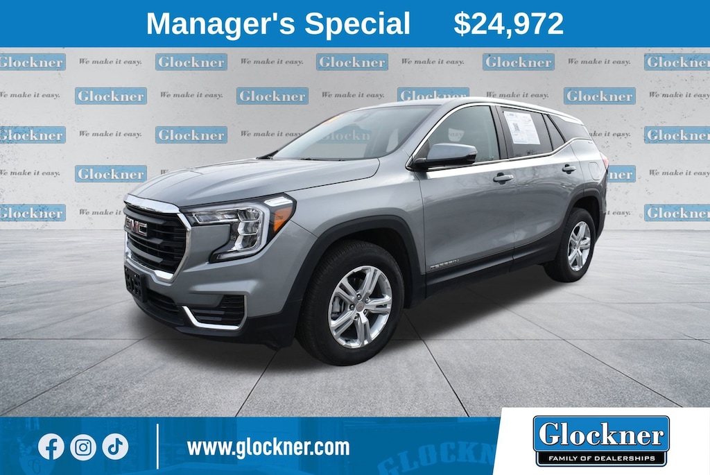 Glockner of Ironton is proud to offer this good-looking 2024 GMC Terrain in Sterling Metallic. This 2024 GMC Terrain has passed our comprehensive inspection and comes with the following features; GMC Pro Safety Plus (Adaptive Cruise Control, Lane Change Alert w/Side Blind Zone Alert, Outside Heated Power-Adjustable Mirrors, Rear Cross-Traffic Alert, Rear Park Assist, and Safety Alert Seat), License Plate Front Mounting Package, Preferred Equipment Group 3SA, Glockner Certified Certified, AWD, 2 USB Data Ports w/Auxiliary Input Jack, 3.47 Final Drive Axle Ratio, 4-Way Manual Driver's Seat, 4-Way Manual Front Passenger Seat, 4-Wheel Disc Brakes, 4.2 Multi-Color Driver Information Screen, 6 Speakers, 6-Speaker Audio System Feature, ABS brakes, Air Conditioning, Alloy wheels, AM/FM radio: SiriusXM, Auto High-beam Headlights, Auto-dimming Rear-View mirror, Automatic temperature control, Bluetooth® For Phone, Brake assist, Bumpers: body-color, Compass, Delay-off headlights, Driver door bin, Driver vanity mirror, Dual front impact airbags, Dual front side impact airbags, Electronic Stability Control, Emergency communication system: OnStar and GMC connected services capable, Four wheel independent suspension, Front anti-roll bar, Front Bucket Seats, Front Center Armrest, Front reading lights, Fully automatic headlights, Heated door mirrors, Illuminated entry, Low tire pressure warning, Occupant sensing airbag, Outside temperature display, Overhead airbag, Overhead console, Panic alarm, Passenger door bin, Passenger vanity mirror, Power door mirrors, Power steering, Power windows, Premium Cloth Seat Trim, Radio data system, Radio: GMC Infotainment Audio System w/7 Display, Rear anti-roll bar, Rear seat center armrest, Rear window defroster, Rear window wiper, Remote keyless entry, Security system, SiriusXM, Speed control, Speed-sensing steering, Split folding rear seat, Spoiler, Steering wheel mounted audio controls, Tachometer, Telescoping steering wheel, Tilt steering wheel, Traction control, Trip computer, Variably intermittent wipers, Wheels: 17 x 7 Silver Painted Aluminum, and Wireless Apple CarPlay/Wireless Android Auto.