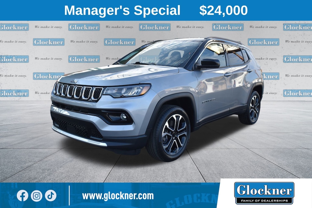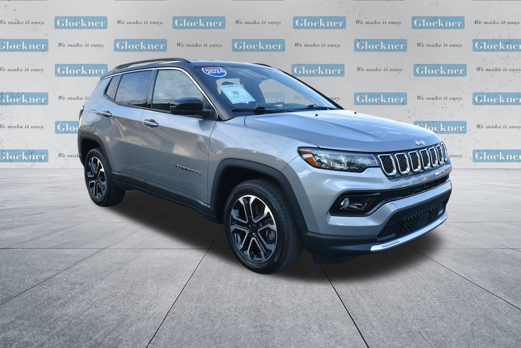 Glockner Chrysler Dodge Jeep Ram of Ashland is proud to offer this stunning 2024 Jeep Compass in Silver Zynith Metallic Clearcoat. This 2024 Jeep Compass has passed our comprehensive inspection and comes with the following features; Quick Order Package 29G Limited, Glockner Certified Certified, 4WD, 10.1" Touchscreen Display, 3.73 Final Drive Ratio, 4-Wheel Disc Brakes, 4G LTE Wi-Fi Hot Spot, 6 Speakers, ABS brakes, Air Conditioning, Alloy wheels, AM/FM radio: SiriusXM, Auto High-beam Headlights, Auto-dimming Rear-View mirror, Automatic temperature control, Brake assist, Bumpers: body-color, Compass, Delay-off headlights, Disassociated Touchscreen Display, Driver door bin, Driver vanity mirror, Dual front impact airbags, Dual front side impact airbags, Electronic Stability Control, Emergency communication system: Jeep Connect, For Details, Visit DriveUconnect.com, For More Info, Call 800-643-2112, Four wheel independent suspension, Front anti-roll bar, Front Bucket Seats, Front Center Armrest w/Storage, Front dual zone A/C, Front fog lights, Front License Plate Bracket, Front reading lights, Fully automatic headlights, Global Telematics Box Module (TBM), Heated door mirrors, Heated front seats, Heated steering wheel, Illuminated entry, Knee airbag, Leather Shift Knob, Leather steering wheel, Leatherette Seats, Low tire pressure warning, Occupant sensing airbag, Outside temperature display, Overhead airbag, Overhead console, Panic alarm, ParkView Rear Back-Up Camera, Passenger door bin, Passenger vanity mirror, Power door mirrors, Power driver seat, Power steering, Power windows, Radio: Uconnect 5 w/10.1" Display, Rain sensing wipers, Rear anti-roll bar, Rear seat center armrest, Rear window defroster, Rear window wiper, Remote keyless entry, Security system, SiriusXM Guardian - Included Trial (B), SiriusXM Radio Service, Speed control, Split folding rear seat, Spoiler, Steering wheel mounted audio controls, Tachometer, Telescoping steering wheel, Tilt steering wheel, Traction control, Trip computer, Turn signal indicator mirrors, Variably intermittent wipers, and Wheels: 18" x 7" Painted Diamond Cut AluminuM.