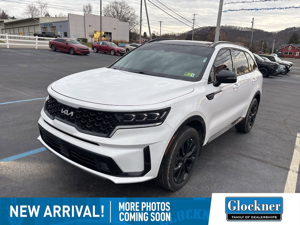 Glockner Chevrolet is proud to offer this terrific 2022 Kia Sorento in Glacial White Pearl. This 2022 Kia Sorento has passed our comprehensive inspection and comes with the following features; Sorento SX, 4D Sport Utility, AWD, Glacial White Pearl, 3.316 Axle Ratio, 3rd row seats: split-bench, 4-Wheel Disc Brakes, 6 Speakers, ABS brakes, Air Conditioning, Alloy wheels, AM/FM radio: SiriusXM, Apple CarPlay & Android Auto, Auto High-beam Headlights, Automatic temperature control, Brake assist, Bumpers: body-color, Cargo Net, Cross Bars, Delay-off headlights, Driver door bin, Driver vanity mirror, Dual front impact airbags, Dual front side impact airbags, Electronic Stability Control, Emergency communication system: UVO Link, Exterior Parking Camera Rear, Four wheel independent suspension, Front anti-roll bar, Front Bucket Seats, Front Center Armrest, Front dual zone A/C, Front fog lights, Front reading lights, Fully automatic headlights, Heated door mirrors, Heated Front Bucket Seats, Heated front seats, Illuminated entry, Knee airbag, Leather steering wheel, Low tire pressure warning, Navigation System, Occupant sensing airbag, Outside temperature display, Overhead airbag, Overhead console, Panic alarm, Passenger door bin, Passenger vanity mirror, Power door mirrors, Power driver seat, Power Liftgate, Power moonroof, Power passenger seat, Power steering, Power windows, Radio data system, Radio: AM/FM Audio System, Rear air conditioning, Rear anti-roll bar, Rear reading lights, Rear window defroster, Rear window wiper, Remote keyless entry, Roof rack: rails only, Security system, Smart Key w/ Push Button and Remote Start, Speed control, Speed-sensing steering, Split folding rear seat, Spoiler, Steering wheel mounted audio controls, SynTex Artificial Leather Seat Trim, Tachometer, Telescoping steering wheel, Tilt steering wheel, Traction control, Trip computer, Turn signal indicator mirrors, Variably intermittent wipers, and Wheels: 8.5J x 20 Gloss Black Alloy.Clean Auto Check/No Accidents Reported, One Owner, Bluetooth / Hands-Free Calling, Rear View Back Up Camera, Local Trade, Apple CarPlay/Android Auto, Sorento SX, 4D Sport Utility, AWD, Glacial White Pearl.22/27 City/Highway MPG