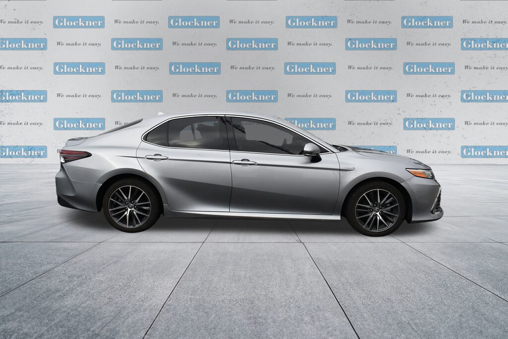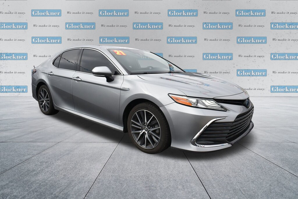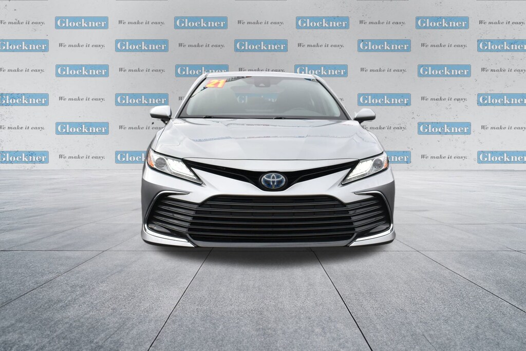 Glockner of Ironton is proud to offer this stunning 2021 Toyota Camry Hybrid in Celestial Silver Metallic. This 2021 Toyota Camry Hybrid has passed our comprehensive inspection and comes with the following features; 2.5L I4 DOHC 16V, 4-Wheel Disc Brakes, 6 Speakers, ABS brakes, Air Conditioning, Alloy wheels, AM/FM radio: SiriusXM, Apple CarPlay/Android Auto, Auto High-beam Headlights, Auto-dimming Rear-View mirror, Automatic temperature control, Brake assist, Bumpers: body-color, Delay-off headlights, Driver door bin, Driver vanity mirror, Dual front impact airbags, Dual front side impact airbags, Electronic Stability Control, Emergency communication system: Safety Connect with 1-year trial, Exterior Parking Camera Rear, Four wheel independent suspension, Front anti-roll bar, Front Bucket Seats, Front Center Armrest, Front dual zone A/C, Front reading lights, Fully automatic headlights, Garage door transmitter: HomeLink, Heated door mirrors, Heated front seats, Illuminated entry, Knee airbag, Low tire pressure warning, Multi-Stage Heated Front Bucket Seats, Occupant sensing airbag, Outside temperature display, Overhead airbag, Overhead console, Panic alarm, Passenger door bin, Passenger vanity mirror, Perforated Leather Seat Trim, Power door mirrors, Power driver seat, Power passenger seat, Power steering, Power windows, Radio data system, Radio: AM/FM/HD Audio Plus, Rear anti-roll bar, Rear reading lights, Rear seat center armrest, Rear side impact airbag, Rear window defroster, Remote keyless entry, Security system, Speed control, Speed-sensing steering, Split folding rear seat, Steering wheel mounted audio controls, Telescoping steering wheel, Tilt steering wheel, Traction control, Trip computer, Turn signal indicator mirrors, Variably intermittent wipers, and Wheels: 8.0J x 18 Machined Finish Alloy.