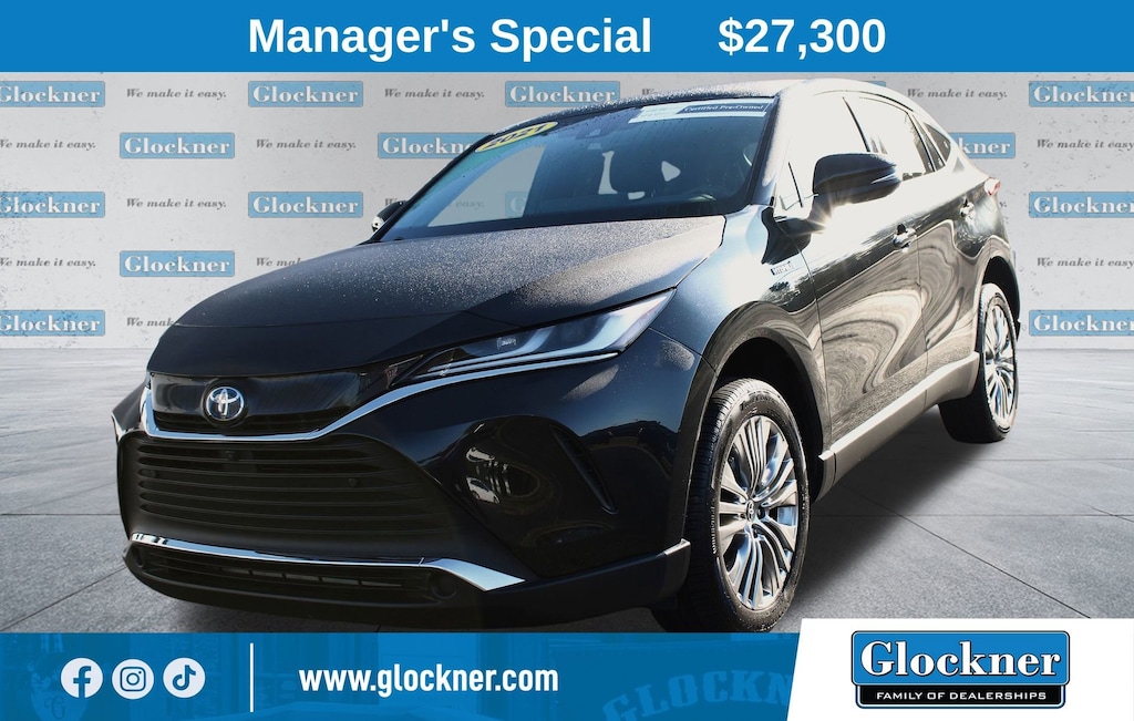 Glockner Chevrolet is proud to offer this good-looking 2021 Toyota Venza in Celestial Black. This 2021 Toyota Venza has passed our comprehensive inspection and comes with the following features; Venza Limited, 4D Sport Utility, AWD, Celestial Black, ABS brakes, Active Cruise Control, Alloy wheels, Electronic Stability Control, Front dual zone A/C, Heated & Ventilated Front Bucket Seats, Heated front seats, Illuminated entry, Low tire pressure warning, Navigation System, Navigation system: Dynamic Navigation (3-year trial), Power Liftgate, Remote keyless entry, Traction control, 4-Wheel Disc Brakes, 9 Speakers, Air Conditioning, AM/FM radio: SiriusXM, Apple CarPlay/Android Auto, Auto High-beam Headlights, Auto-dimming Rear-View mirror, Automatic temperature control, Axle Ratio: TBD, Brake assist, Bumpers: body-color, Chrome wheels, Driver door bin, Driver vanity mirror, Dual front impact airbags, Dual front side impact airbags, Emergency communication system: Safety Connect with 1-year trial, Four wheel independent suspension, Front anti-roll bar, Front Bucket Seats, Front Center Armrest, Front reading lights, Fully automatic headlights, Garage door transmitter: HomeLink, Heated steering wheel, Knee airbag, Leather Shift Knob, Leather steering wheel, Memory seat, Occupant sensing airbag, Outside temperature display, Overhead airbag, Overhead console, Panic alarm, Passenger door bin, Passenger vanity mirror, Perforated SofTex Seat Trim, Power door mirrors, Power driver seat, Power passenger seat, Power steering, Power windows, Radio data system, Radio: Premium Audio w/Dynamic Navigation & JBL, Rain sensing wipers, Rear anti-roll bar, Rear seat center armrest, Rear window defroster, Rear window wiper, Roof rack: rails only, Speed control, Speed-sensing steering, Split folding rear seat, Spoiler, Steering wheel mounted audio controls, Telescoping steering wheel, Tilt steering wheel, Trip computer, Turn signal indicator mirrors, Variably intermittent wipers, Ventilated front seats, and Wheels: 7 x 19 Alloy.