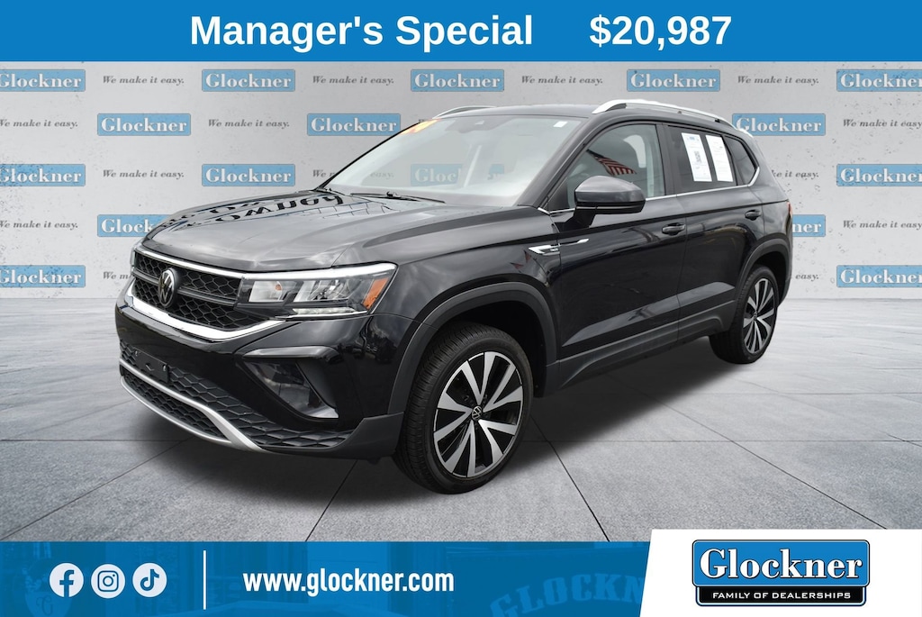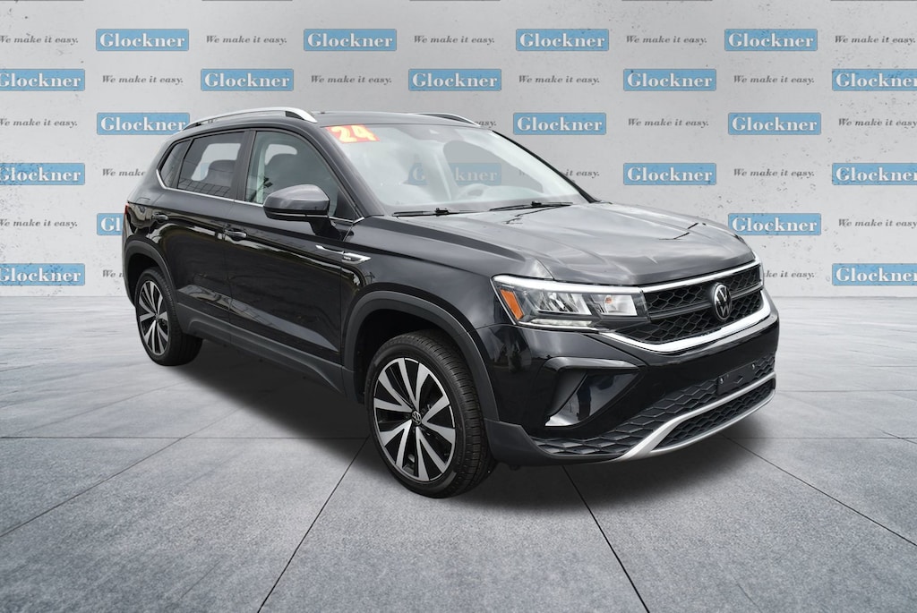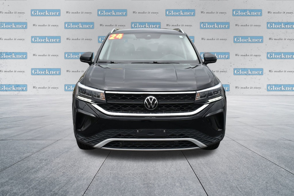 Glockner of Ironton is proud to offer this handsome 2024 Volkswagen Taos in Deep Black Pearl. This 2024 Volkswagen Taos has passed our comprehensive inspection and comes with the following features; Glockner Certified Certified, 3.23 Axle Ratio, 4-Wheel Disc Brakes, 6 Speakers, ABS brakes, Active Blind Spot Monitor, Air Conditioning, Alloy wheels, AM/FM radio: SiriusXM with 360L, Auto High-beam Headlights, Automatic temperature control, Brake assist, Bumpers: body-color, CloudTex & Cloth Seating Surfaces, Compass, Delay-off headlights, Driver door bin, Driver vanity mirror, Dual front impact airbags, Dual front side impact airbags, Electronic Stability Control, Emergency communication system: VW Car-Net Safe & Secure 5-year, Exterior Parking Camera Rear, Front anti-roll bar, Front Bucket Seats, Front Center Armrest, Front dual zone A/C, Front reading lights, Front Strut Rear Torsion Beam Suspension, Front wheel independent suspension, Fully automatic headlights, Heated door mirrors, Heated Front Bucket Seats, Heated front seats, Heated steering wheel, Illuminated entry, Leather Shift Knob, Low tire pressure warning, Occupant sensing airbag, Outside temperature display, Overhead airbag, Overhead console, Panic alarm, Passenger door bin, Passenger vanity mirror, Power door mirrors, Power driver seat, Power steering, Power windows, Radio data system, Radio: MIB3 Composition Media AM/FM/HD, Rain sensing wipers, Rear anti-roll bar, Rear seat center armrest, Rear window defroster, Rear window wiper, Remote keyless entry, Roof rack: rails only, Security system, Speed control, Speed-sensing steering, Split folding rear seat, Spoiler, Steering wheel mounted audio controls, Tachometer, Telescoping steering wheel, Tilt steering wheel, Traction control, Trip computer, Variably intermittent wipers, and Wheels: 18 2-Tone Machined Alloy.